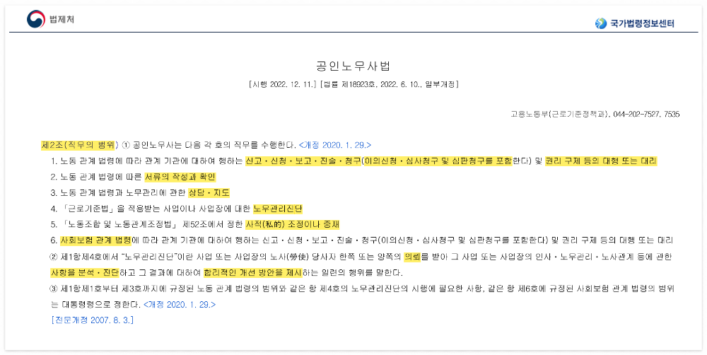공인노무사 주요 업무