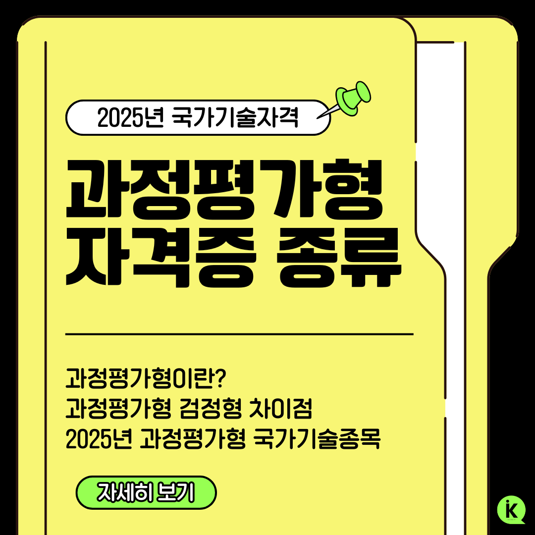 이 글에서는 과정평가형 기술자격제도 특징과 과정평가형과 검정형 차이를 비교해 보고, 2025년 과정평가형 자격증 종류 알아보았습니다.