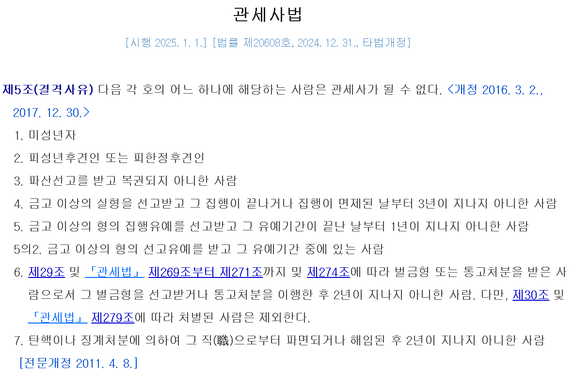 - 관세사 결격 사유 (관세사법 제5조) 에 해당하지 않는 사람