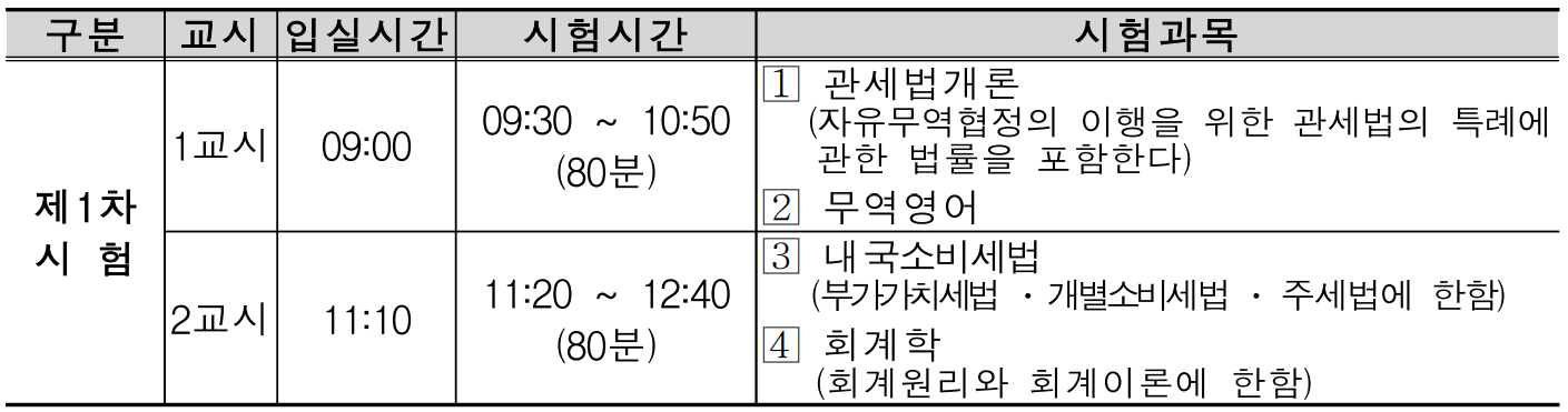 관세사 시험과목 및 합격 기준