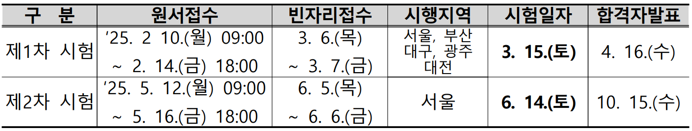 | 시험 일자 | 2025. 3. 15 (토) | 2025. 6. 14 (토) |