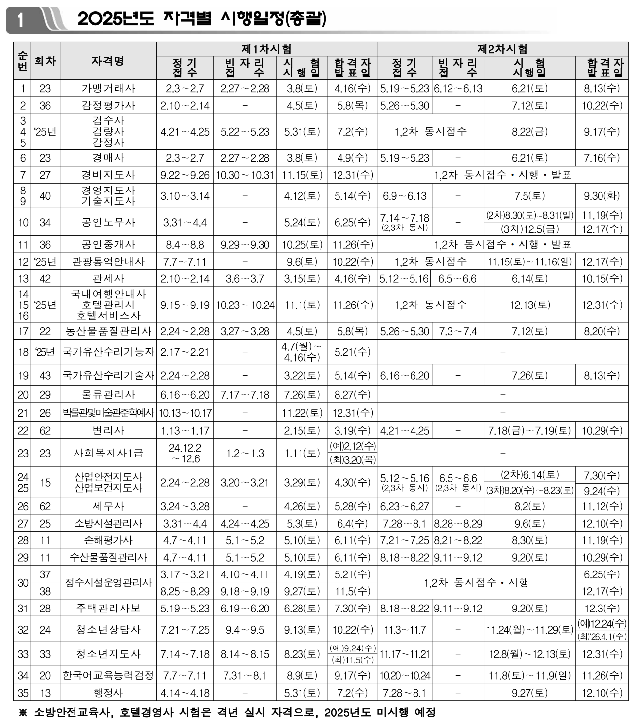 2025년 국가전문자격 시험일정