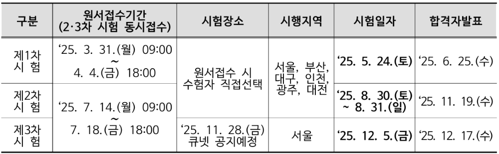 시험일자 2025. 5. 24 (토) 2025. 8.30 (토) ~ 8. 31 (일) 2025. 12. 5 (금)